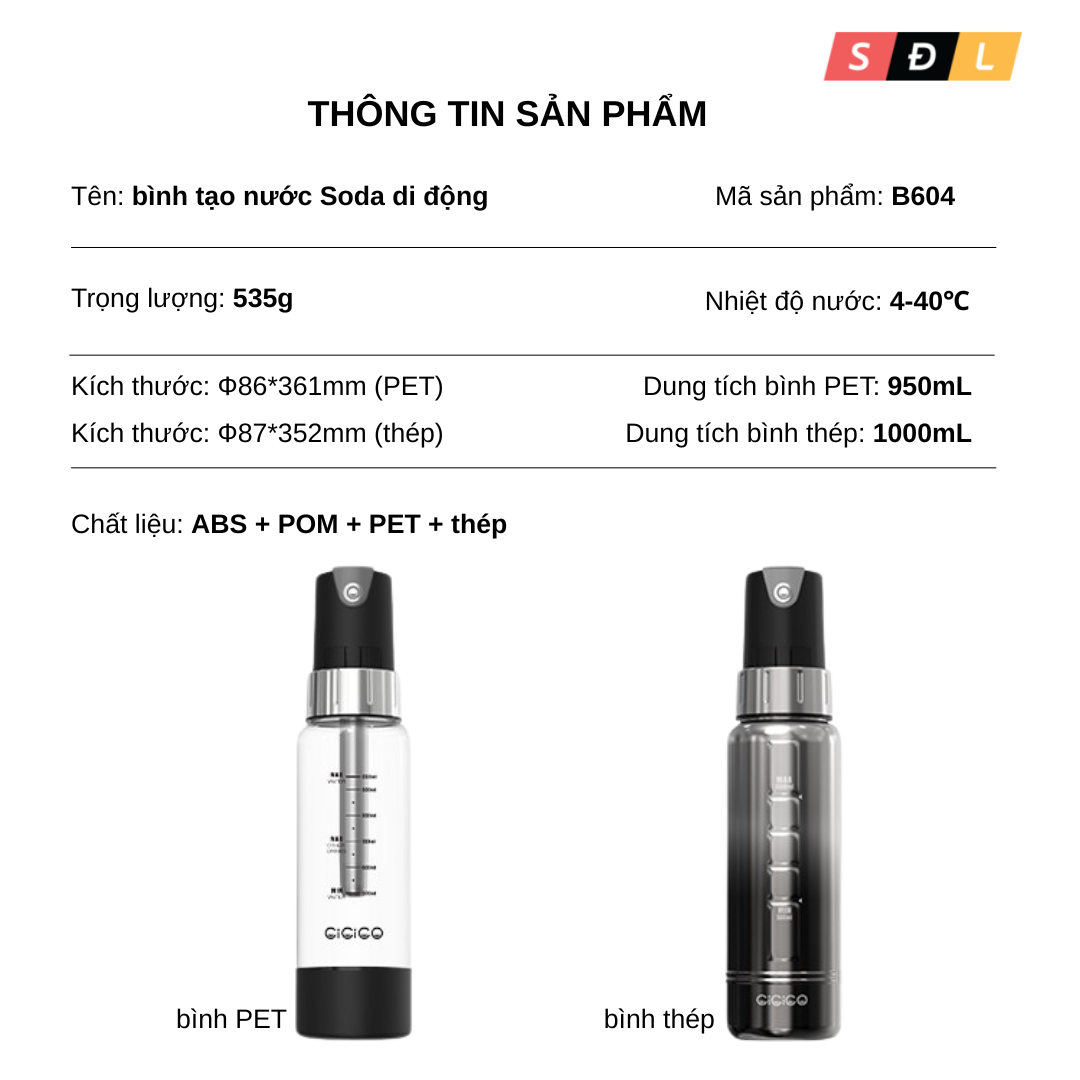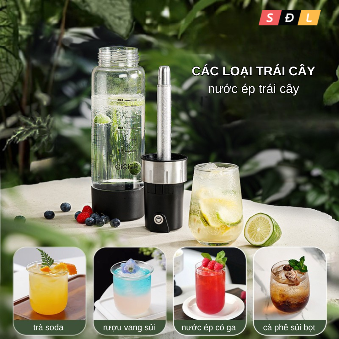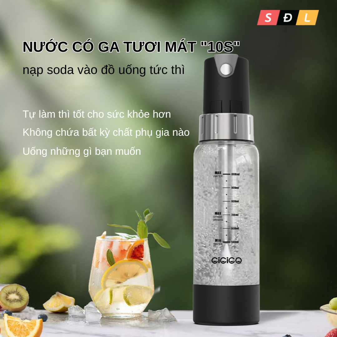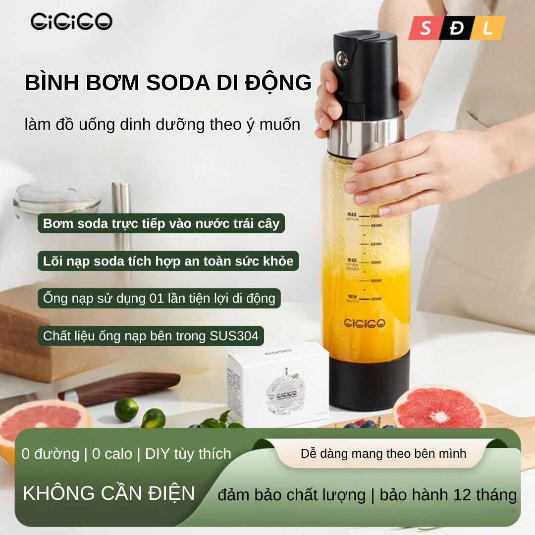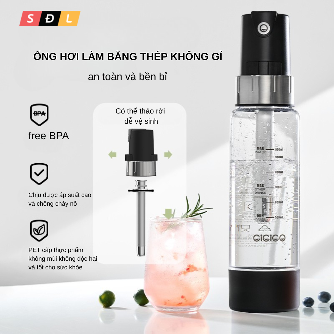 Bình tạo nước Soda di động CiCiCo B604 dung tích 950mL nạp được Soda cho nước ép trái cây