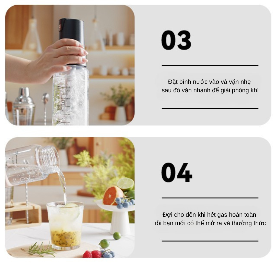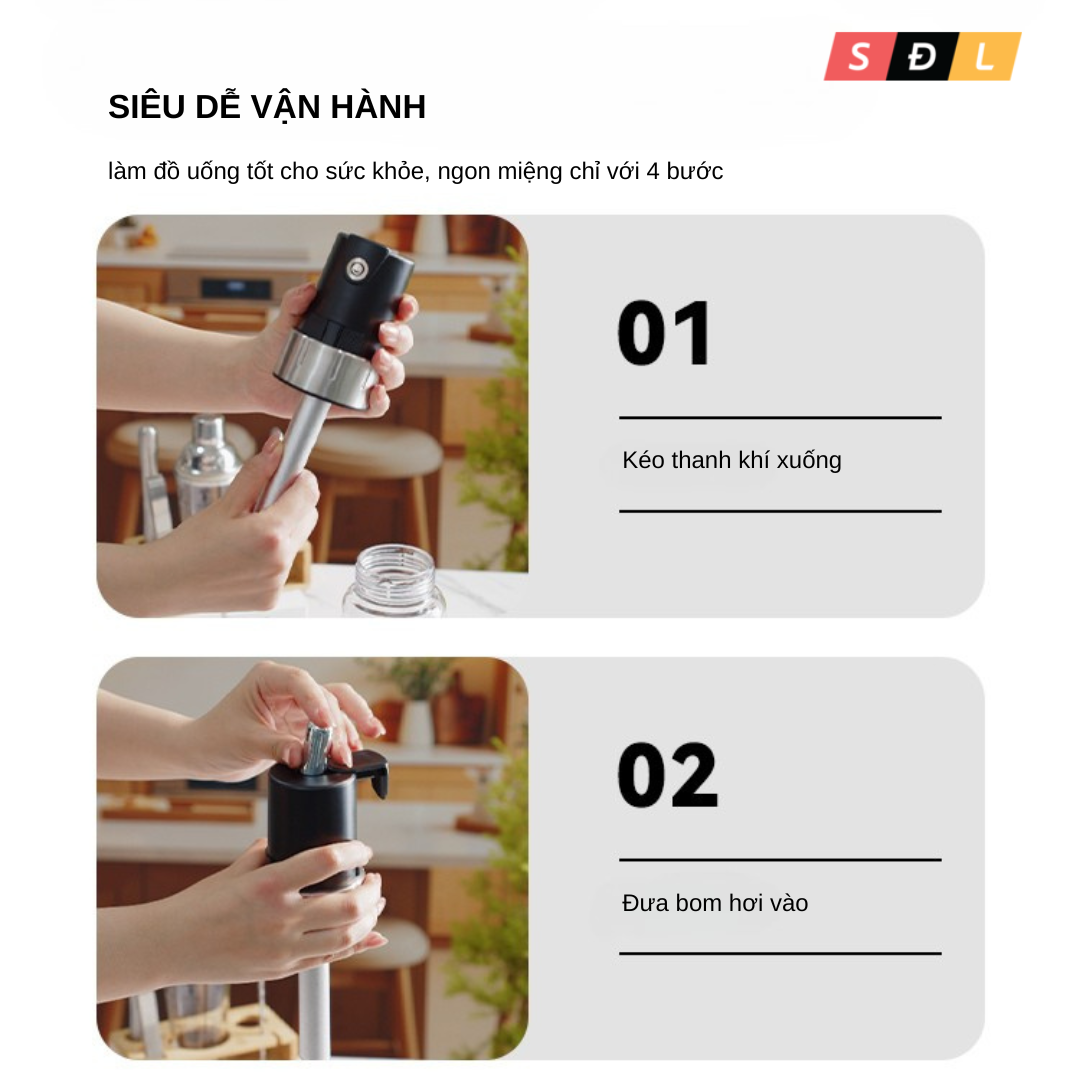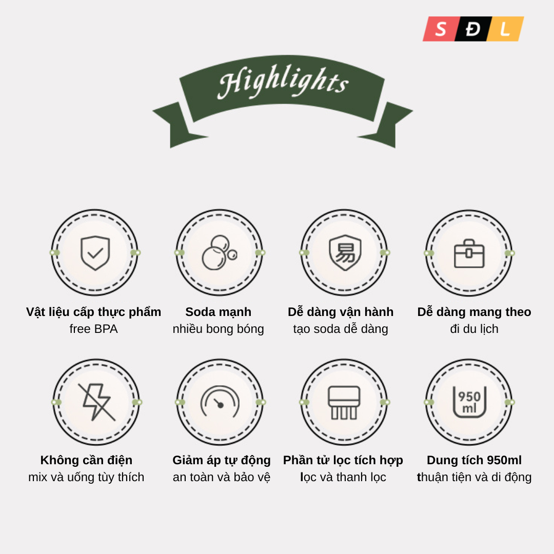 Chỉ cần 10 giây là bạn có thể tạo ra thứ đồ uống Soda từ bất kỳ loại nước quen thuộc nào như: nước lọc, nước ép trái cây, sữa hay bất kỳ loại đồ uống nào mà bạn thích.