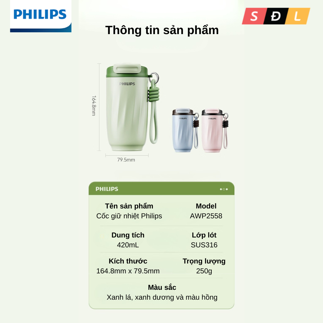Cốc cafe, ly giữ nhiệt Philips AWP2558 dung tích 420mL tiện lợi uống bằng một tay