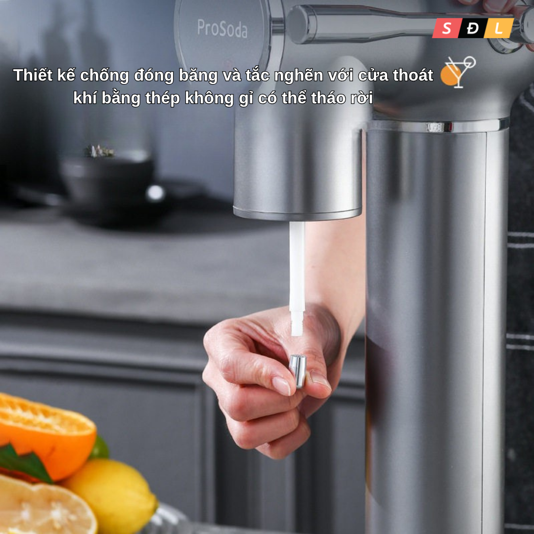 —Máy tạo nước có ga soda ProSoda có cơ chế bơm chống trào giúp bạn có thể bơm soda trực tiếp vào các loại nước ép trái cây hoặc pha chế đồ uống
