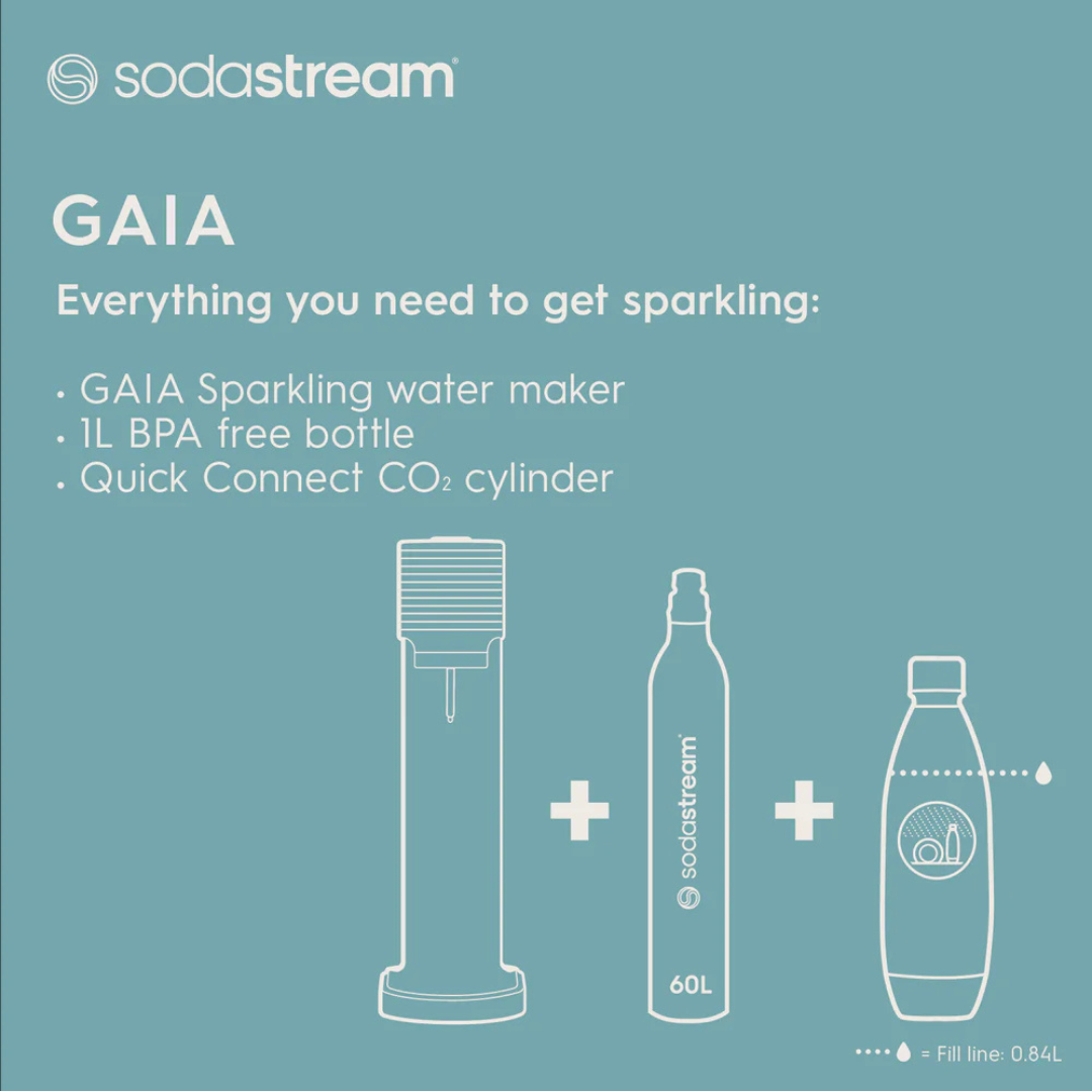 —Bình khí sodastream bão hòa kèm theo có thể nạp lên tới 60 lít nước.