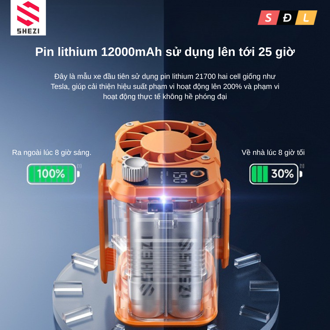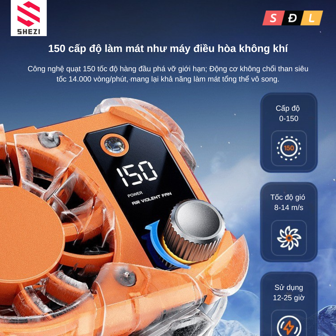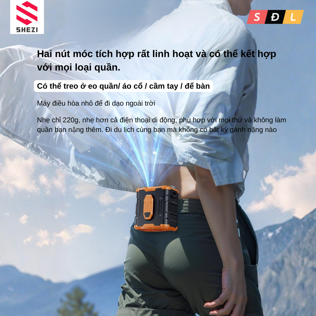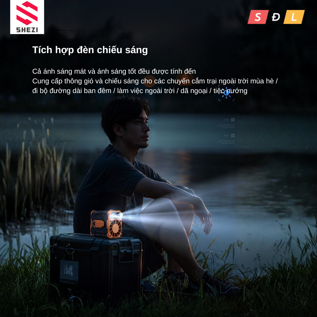 Quạt đeo hông ngoài trời công suất lớn Shezi BF42 với 150 cấp độ gió với lõi pin 21700 sịn sò